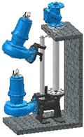 Questa operazione può essere ripetuta innumerevoli volte e facilita particolarmente i lavori di controllo e di ispezione: l’ elettropompa viene semplicemente estratta dal pozzetto con catena (anche in caso di impianto allagato), controllata o riparata e rimontata.